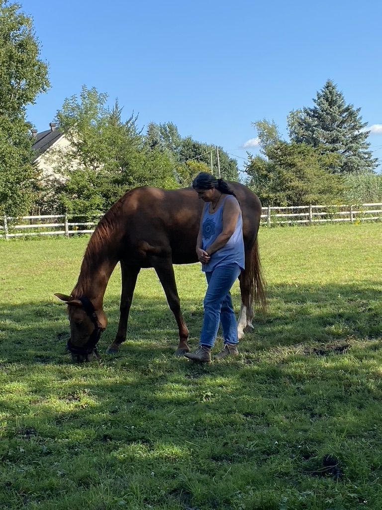Paradoxe! Quoi de plus évocateur de cette dualité qui nous habite de façon plus ou moins intense dans nos grands tournants de vie! Quand un temps d’arrêt s’impose pour faire le point… J’ai eu le privilège de vivre l’expérience Paradoxe dans l’un de ces moments et d’expérimenter la relation thérapeutique avec une jument sage et maternelle, sensible et douce. Elle a accueilli mon désarroi, guidé ma démarche, touché ma sensibilité et soulagé mon cœur lourd. Wow! Je suis restée sans mot, ce qui est rare pour moi, transformée par son contact. Merci Paradoxe, Martine pour cette expérience hors du commun. À refaire!